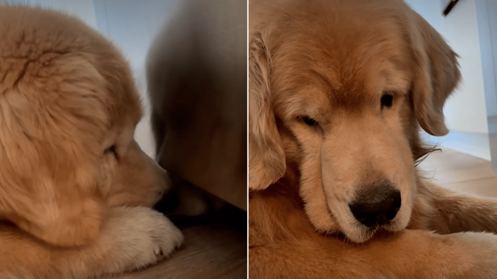 The Golden Retriever’s reaction in the video hides a heartbreak. He finds the snack with excellent detective work, he watches it get rescued, and he watches his owner take it away from him while silently agreeing to the rules — and to be fair, his sad little face is valid.