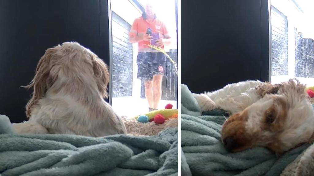 Dog is too lazy to respond to a door knock in hilarious video